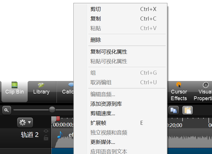 6、因為錄制完成之后我們得到的是一個視頻,而我們需要的是音頻,所以我們需要在軌道軸上面把視頻,右鍵刪除。