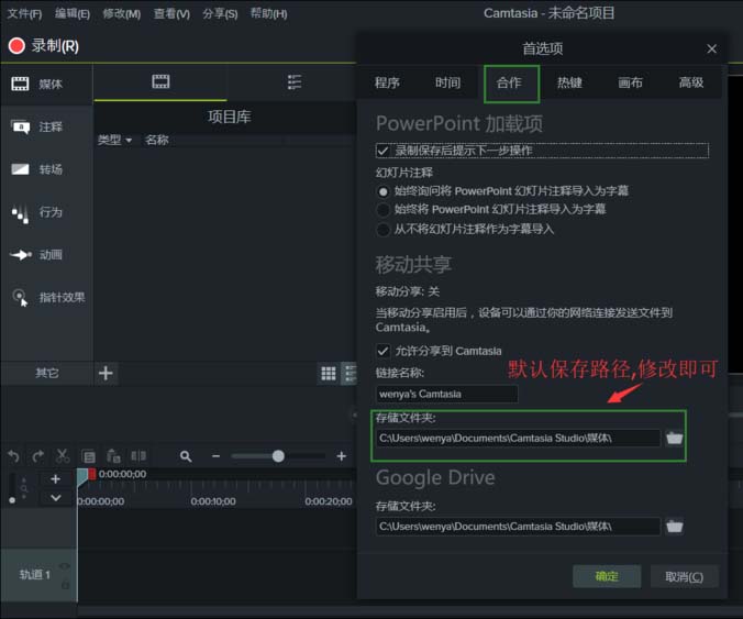 Camtasia studio 9.0怎么更改默認的存儲路徑?