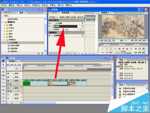 9、如果需要對視頻的透明度等等信息進行修改的畫,點擊特效控制找到透明度設置具體的數(shù)值即可。