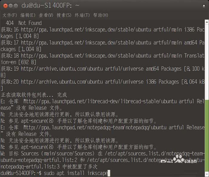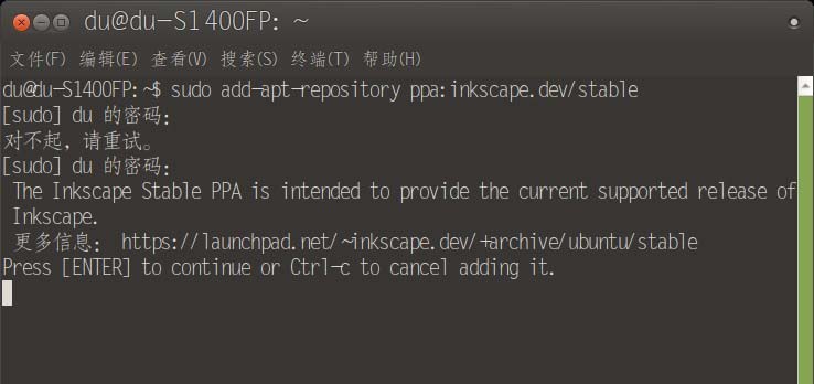 2、添加源sudo add-apt-repository ppa:inkscape.dev/stable