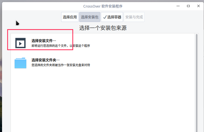 7、在彈出的窗口中選擇“選擇安裝包”——“選擇安裝文件”。