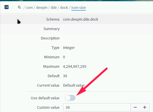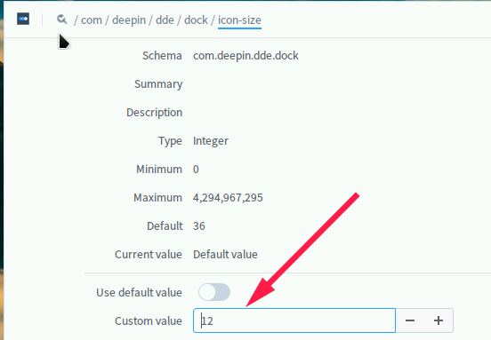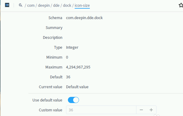 2、依次找到/com/deepin/dde/dock/icon-size,如下圖所示