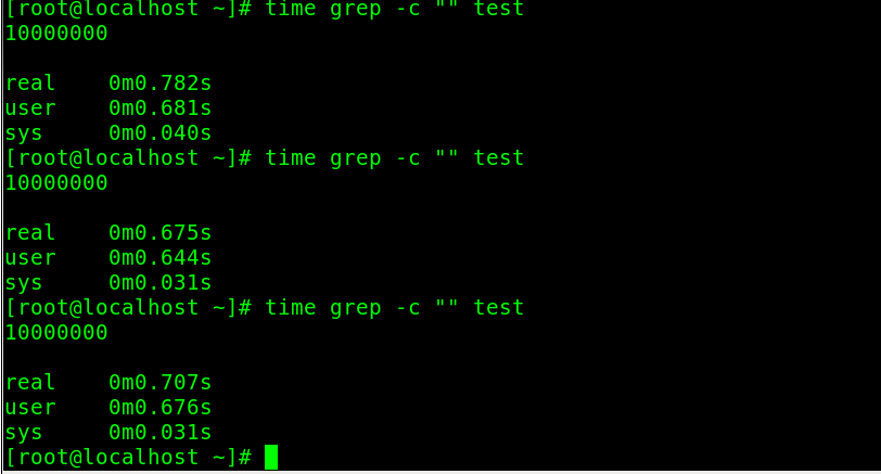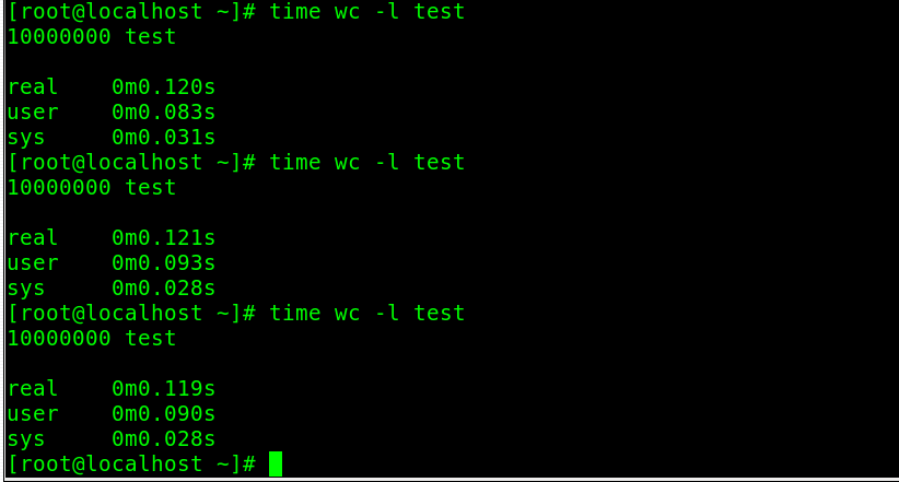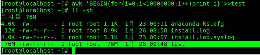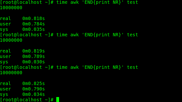 生成測試所需文件:awk 'BEGIN{for(i=0;i<10000000;i++)print i}'>>test