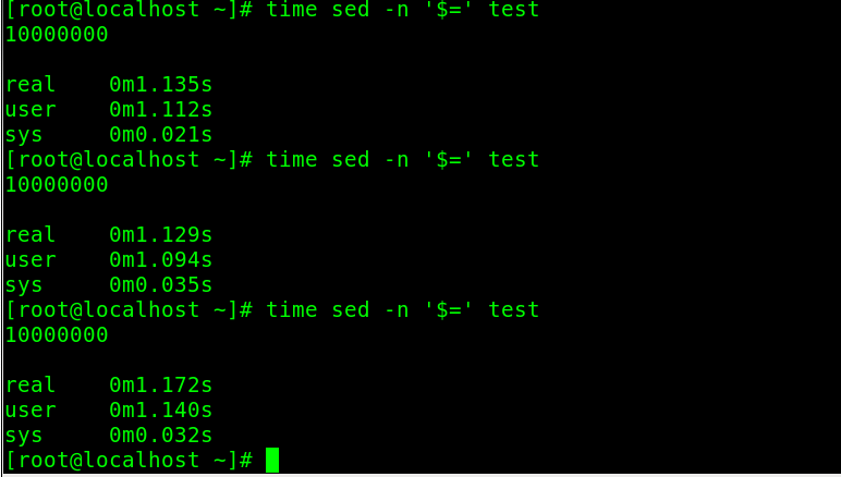 wc的效率遠高于其他方法,具體效率:wc>grep>awk>sed