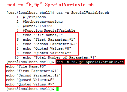 sed -n "開始行,結束行p" 文件名,表示查看文件的開始行到結束行的內容,sed -n "5,9p" SpecialVariable.sh,如下圖