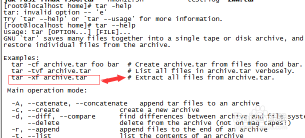 4、解壓tar的文件需要有一些命令的,所以可以通過幫助的方法來解壓文件,獲取tar的幫助,直接輸入tar --help即可。