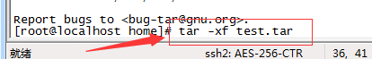 5、然后到需要的解壓的所在的目錄下,進行輸入該命令即可,tar -xf test.tar