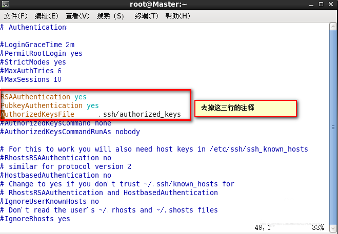 vim /etc/ssh/sshd_config -->去掉下圖中三行的注釋