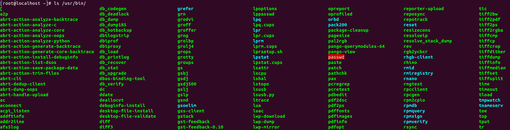 主要放置一些應用軟件工具的必備執行檔例如c++、g++、gcc、chdrv、diff、dig、du、eject、elm、free、gnome*、 zip、htpasswd、kfm、ktop、last、less、locale、m4、make、man、mcopy、ncftp、 newaliases、nslookup passwd、quota、smb*、wget等。