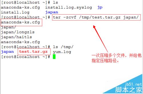 例如:tar -zcvf /tmp/test.tar.gz japan/