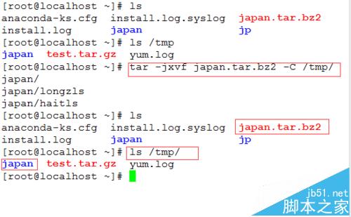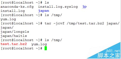例如:tar -jcvf /tmp/test.tar.bz2 japan/