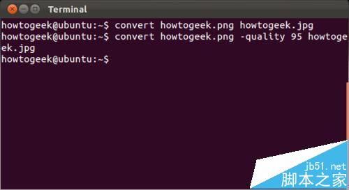 您還可以指定為JPEG圖像壓縮級別:convert howtogeek.png -quality 95 howtogeek.jpg 數(shù)必須是1和100 默認為92