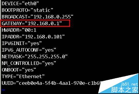 2、對于網卡設置網關之外,沒有設置網關的網卡。還需要檢查系統默認的網關,找到 /etc/sysconfig/network 配置文件如下圖 (如果沒有需要添加一個默認網關上去)
