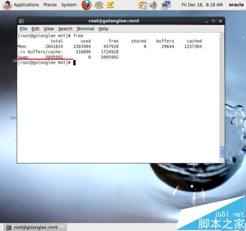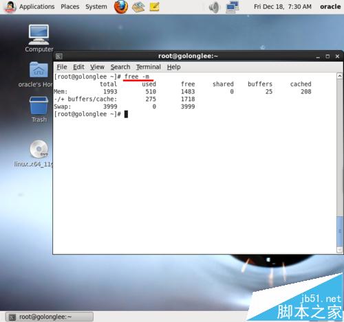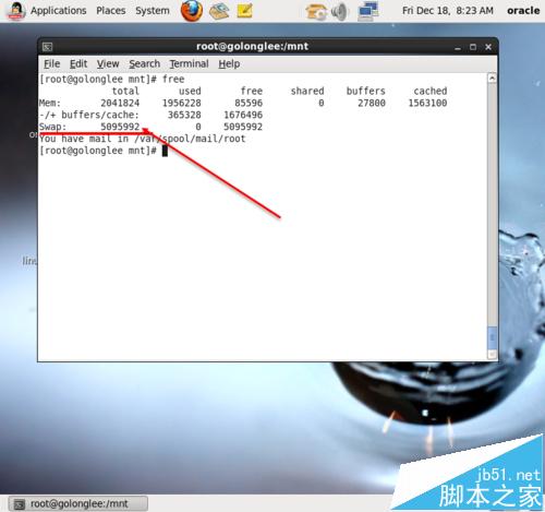 1、使用free命令帶上m參數,查看swap文件大小,官方建議在RAM是2到4.5G時,swap是RAM的2倍;如果RAM大于等于4G則swap等于RAM即可