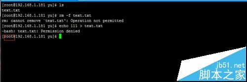 1、首先刪除一個(gè)文件,提示'Operation not permitter',普通用戶不能刪除;