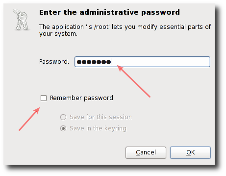 gksu -u root 'ls /root'