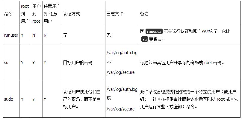 僅以會話PAM鉤子運行,并且沒有密碼提示。如果用一個非root用戶,并且該用戶沒有權(quán)限設(shè)置user ID,這個命令將會因為程序沒有setuid而失敗。因runuser不會運行認證和賬戶PAM鉤子,它比su更底層。
