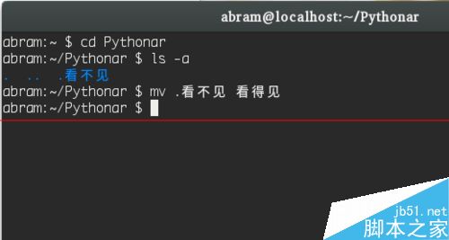 1、首先展示如何隱藏文件夾。(文件和文件夾的操作方法完全一致,后面就略掉了。)假如在你的Home目錄下有個Pythonar目錄,里面有個文件夾叫“看不見”。