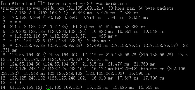 對于有HTTP服務的主機,可以用參數設置traceroute使用TCP協議進行探測,就可以獲得最終節點: