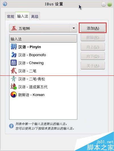 6、點擊[添加]按鈕,即可把五筆添加到常用的輸入法中去了