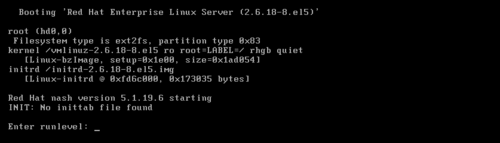 3、啟動系統,由于丟失inittab文件,連物理啟動也完成不了.