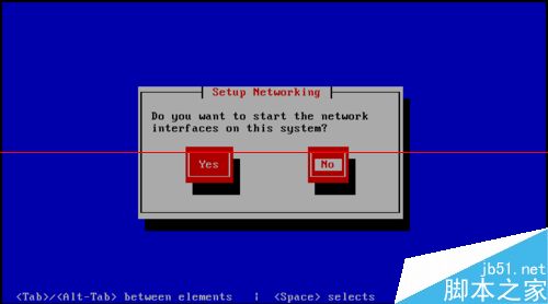 7、這里要求設置網卡信息,一般不設置,我們用tab鍵切換到no即可