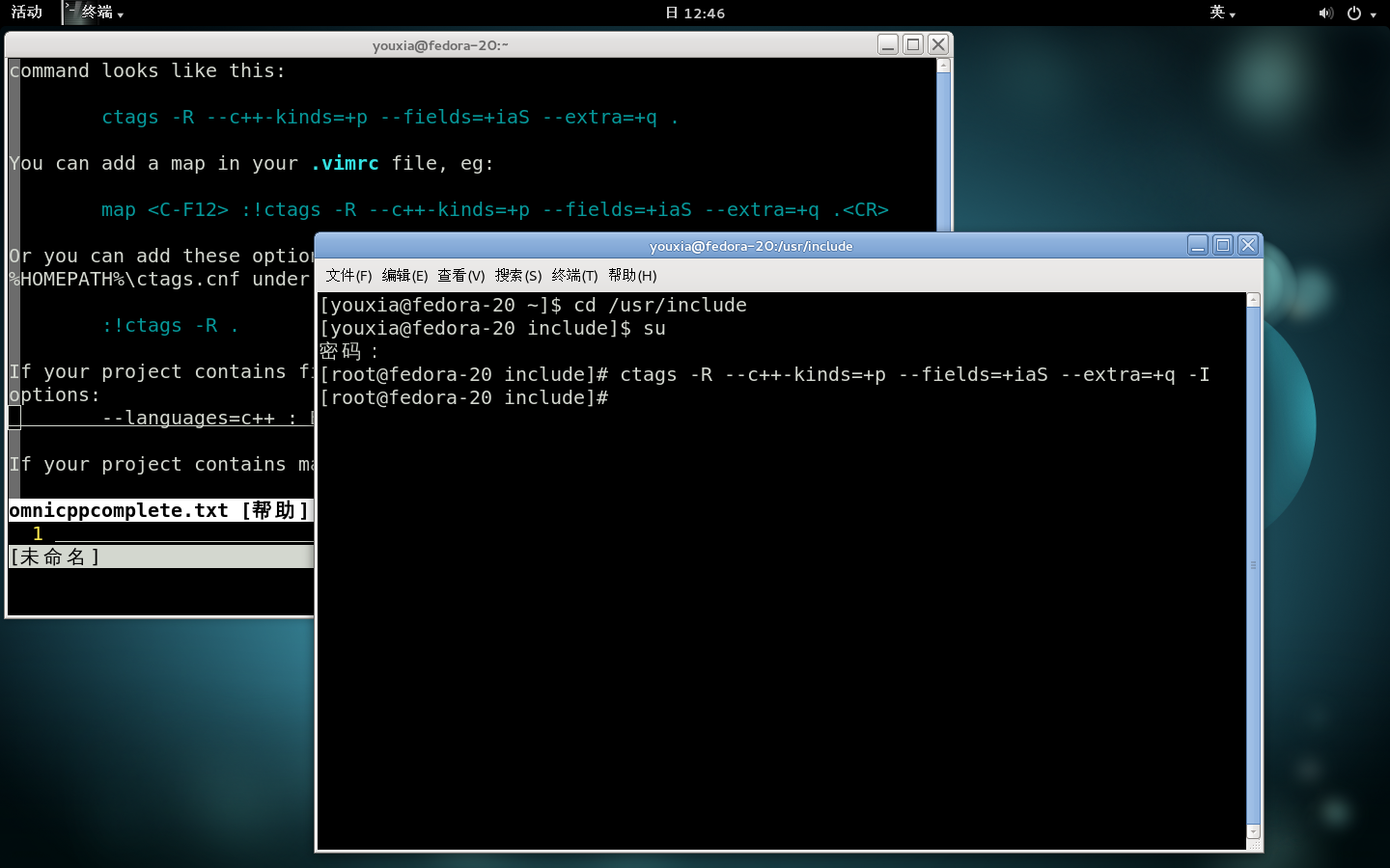 這些插件中,taglist.vim和OmniCppComplete需要ctags軟件的支持,所以需要安裝exuberant-ctags軟件包,在Fedora 20中,只需要使用yum install ctags即可自動安裝。