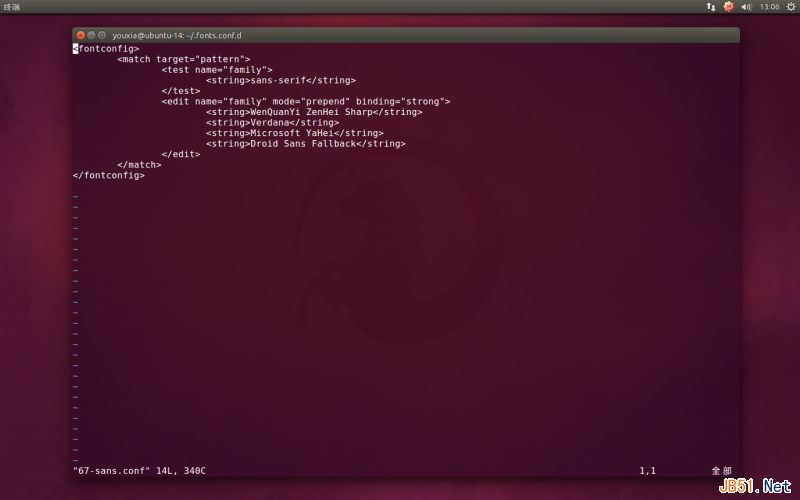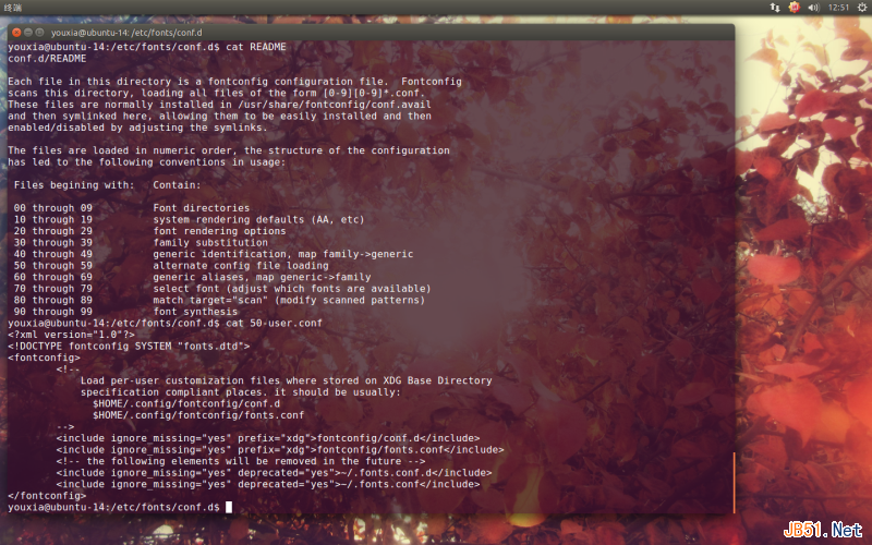 最后,進入~/.fonts.conf.d目錄,編寫相應的配置文件。