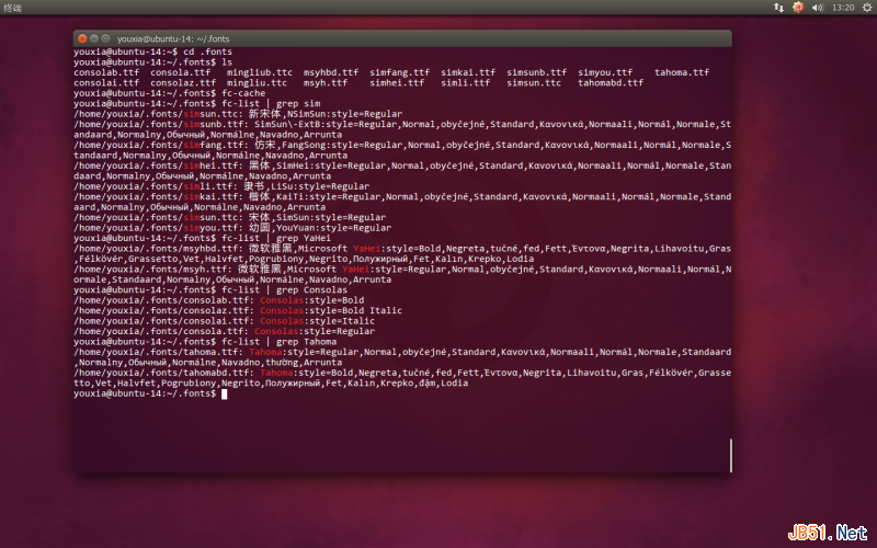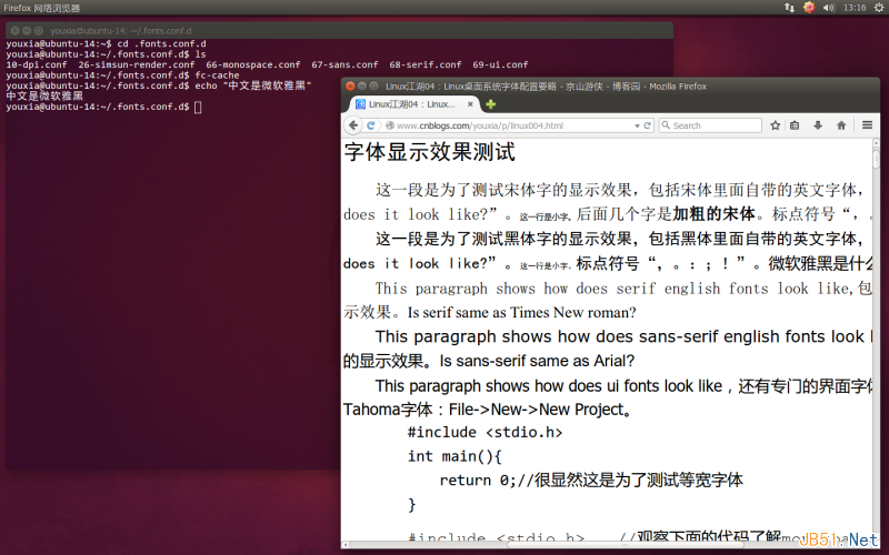 在這里,我準備將我新安裝的Ubuntu 14.10系統的字體進行一點美化。考慮到很多人在使用Linux系統的時候喜歡和Windows系統進行對比,所以我決定借用Windows中的字體,將Ubuntu配置為和Windows相同的顯示效果。基本思路如下: