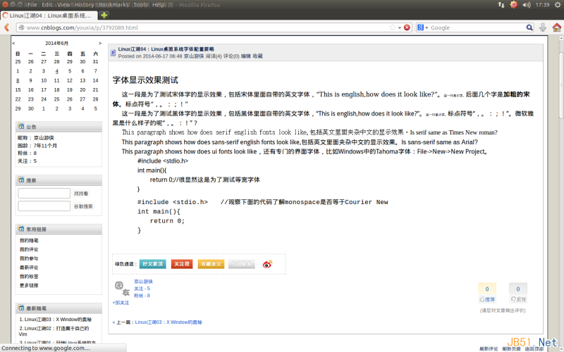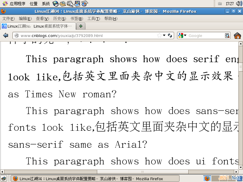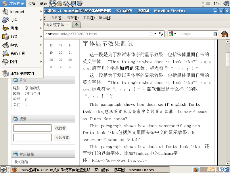 Linux中的字體 下面,通過大量的圖片直觀地感受不同的字體以及不同的字體顯示技術會帶來什么樣的效果。