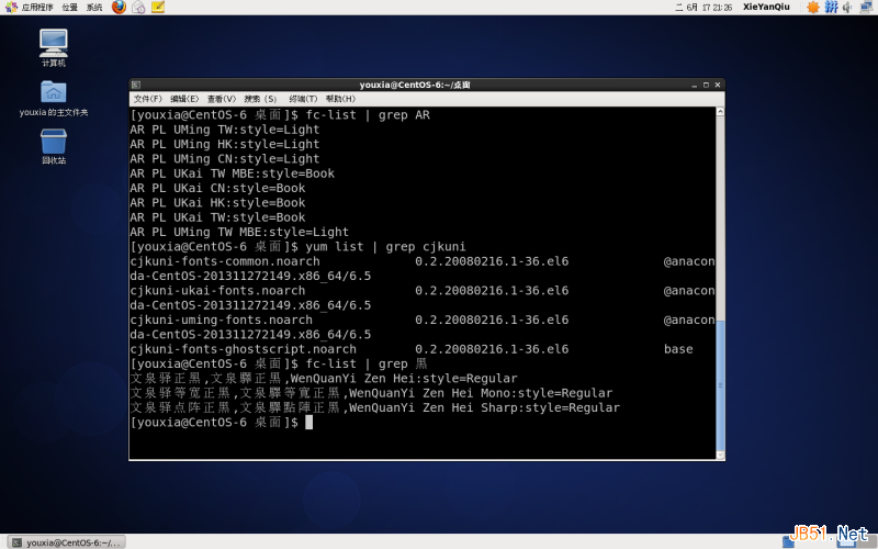 CentOS 6中已經有了文泉驛,如下圖,之所以沒有顯示黑體不是因為沒有黑體,而是因為沒有正確配置: