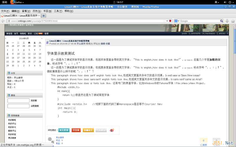 3、即使是最新的Linux發行版,如Ubuntu 14和Fedora 20,其字體設置也不合理,對serif、sans-serif、宋體、黑體的理解都不正確。所以,對于字體,我們還是得自己配置。