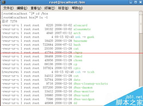 3、當然,你也可以用ls /bin/ -l,如圖,查看指定目錄下/bin的內容如圖
