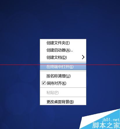 2、在桌面上右擊鼠標(biāo),選擇“在終端中打開(kāi)”。