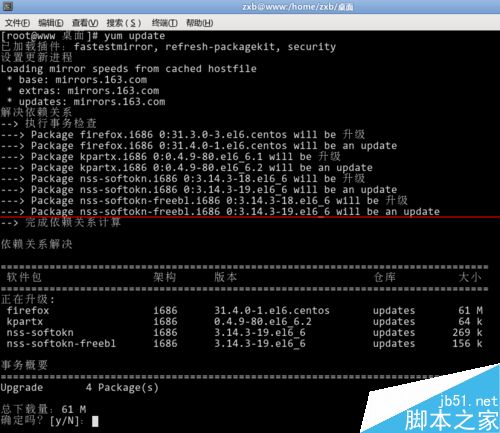 4、再鍵入 yum update(這是CentOS的系統(tǒng)更新命令),回車。這時(shí),系統(tǒng)會(huì)檢測(cè)是否有可升級(jí)的程序,如果有,則會(huì)列出詳細(xì)的升級(jí)項(xiàng),并詢問(wèn)你是否升級(jí),你只需輸入 y 回車即可。
