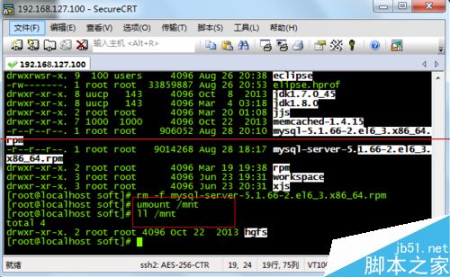 6、使用完畢以后,要記得卸載光盤(pán)。在命令行輸入:umount /mnt。然后再進(jìn)入/mnt目錄就看不到光盤(pán)的內(nèi)容了,說(shuō)明已經(jīng)成功卸載。
