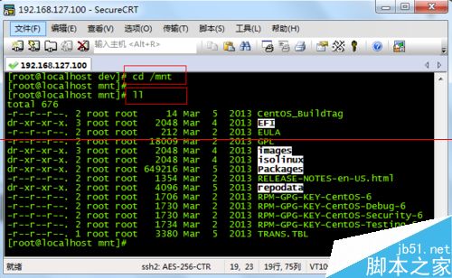 3、比如我們要從光盤(pán)中拷貝出來(lái)一個(gè)rpm包。首先在命令行輸入:cd /mnt。然后輸入ll。就列出了光盤(pán)里面的所有的內(nèi)容。