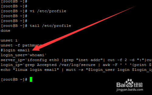 最后把相關的信息以及發郵件的命令寫到/etc/profile這個文件里邊,如下