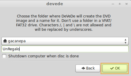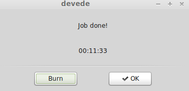 在DeVeDe創建完視頻DVD后,下面這個對話框將呈現在我們眼前: