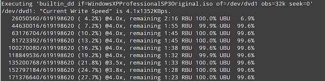 # growisofs -dvd-compat -speed=4 -Z /dev/dvd1=WindowsXPProfessionalSP3Original.iso
