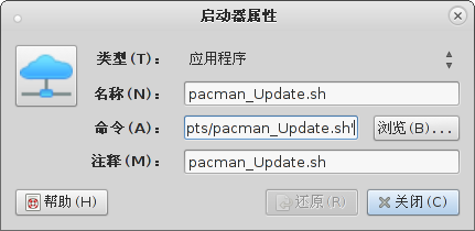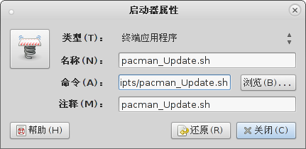 問題提出按照舊思路,在面板中添加啟動器指向 .sh 腳本,以這個為例:
