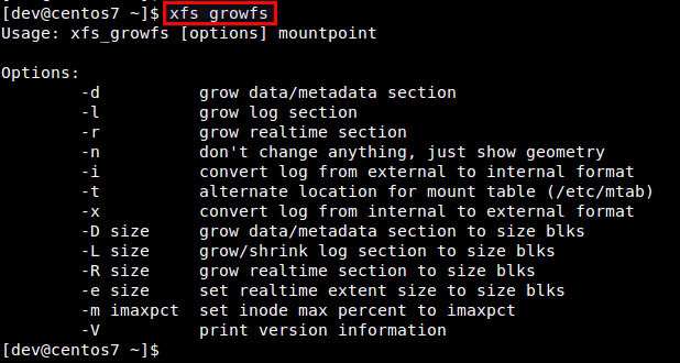 下面展示了xfs_growfs的基本用法: