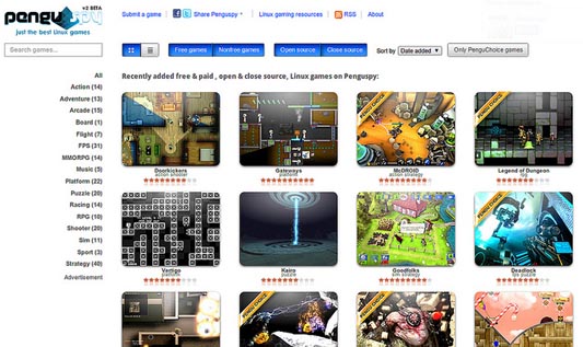 Steam在Linux上嶄露頭角之前,可玩性可能是Linux的軟肋。但這個名為“pengsupy”的網站不遺余力地彌補這個軟肋,通過使用漂亮的界面展現了數據庫中收集的所有兼容Linux的游戲。游戲按照類別、發行日期、評分等指標分類。我真心希望這一類的網站不會因為Steam的存在走向衰亡,畢竟這是我在這個列表里最喜愛的網站之一。