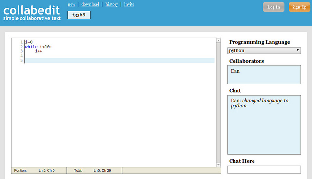 如果你曾經計劃過電話面試,你應該先試試collabedit。它讓你創建文件,選擇你想使用的編程語言,然后通過URL共享文檔。打開鏈接的人可以免費地實時使用文本交互,使你可以評判他們的編程水平或只是交換一些程序片段。這里甚至還提供合適的語法高亮和聊天功能。換句話說,這就是程序員的即時Google Doucment。