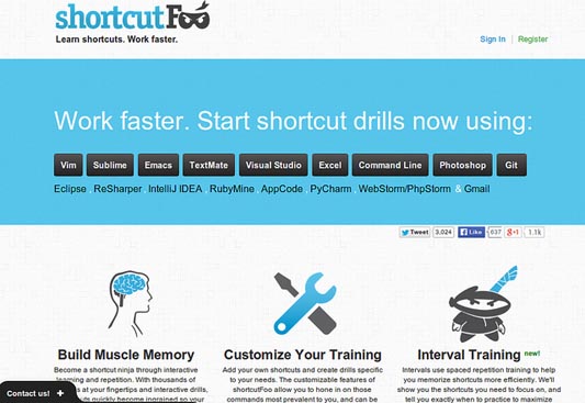 又一個包含眾多快捷鍵數據庫的網站,shortcutfoo以更標準的方式將其內容呈現給用戶,但絕對比有趣的迷你游戲更直截了當。這里有許多軟件的快捷鍵,并按類別分組。雖然像Vim一類的軟件它沒有給出超級完整的快捷鍵列表,但也足以提供快速的提示或一般性的概述。