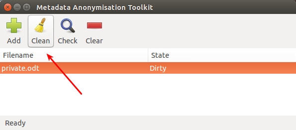 點擊“清理”按鈕來清除文件中的元數據。MAT會自動清空文件中的所有私有元數據字段。
