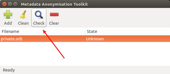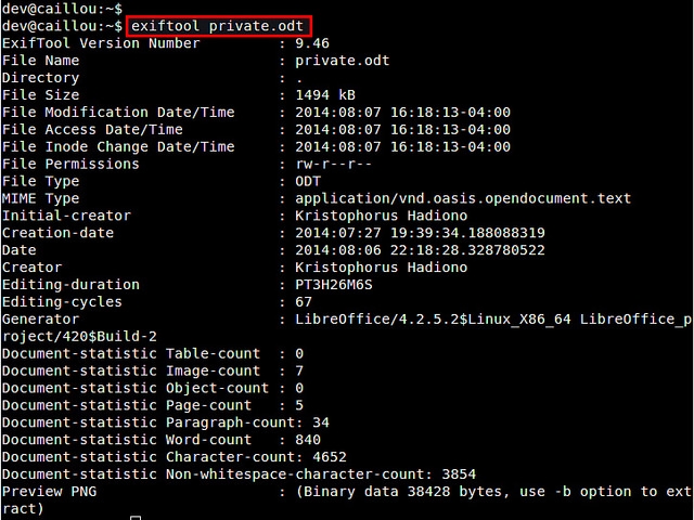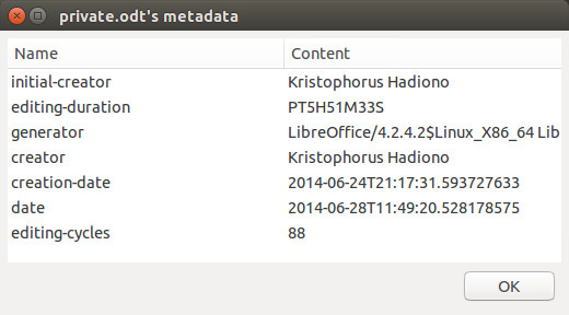 嘗試清理一個包含如下內置元數據的實例文檔文件(如private.odt)。