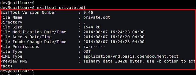 為了檢查任何敏感的元數據,先前往文件所在的目錄,然后運行: