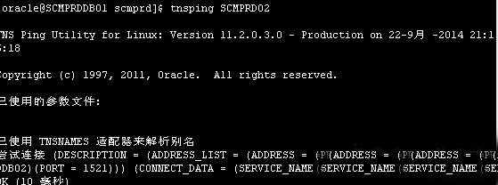 1、檢查監聽是否啟動,腳本:tnsping SCMPRD02