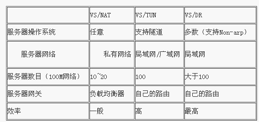三種LVS負載均衡技術(shù)的優(yōu)缺點歸納以下表: